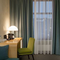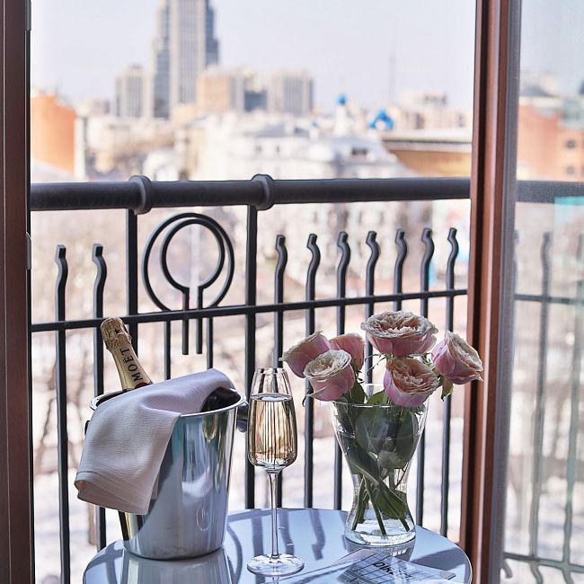 Panoramic windows overlooking Strastnoy Boulevard, Pushkin Square and Tverskaya Street (view on request). For those who value quietness we offer rooms with the courtyard view. Twin rooms have a view of the courtyard only.